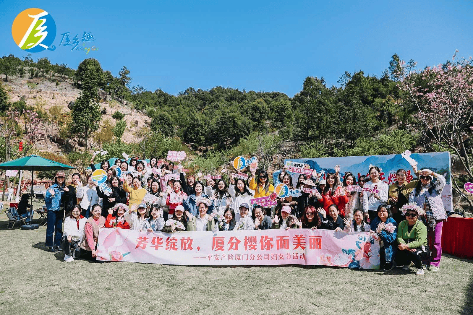 樱缘相聚,共赴春光。3月7日,全体女员工一同奔赴“樱缘状元尖”厦乡趣之约,走进厦门市同安区莲花镇小坪村,在漫山樱花间开启一场治愈身心的春日旅程。清晨集结出发,一路欢声笑语;抵达樱花山庄后,漫步樱园花海,看粉樱缀枝、春风拂香,在山野间寻宝祈福,亲手制作樱花书签,将春日浪漫定格;正午围坐共享地道乡宴,芥菜鲜香、烟火氤氲,畅谈间暖意融融;午后围炉煮茶、泛舟游湖,于悠然时光中放松身心,有机蔬菜采摘体验更让大家收获自然馈赠,满载喜悦与清甜。