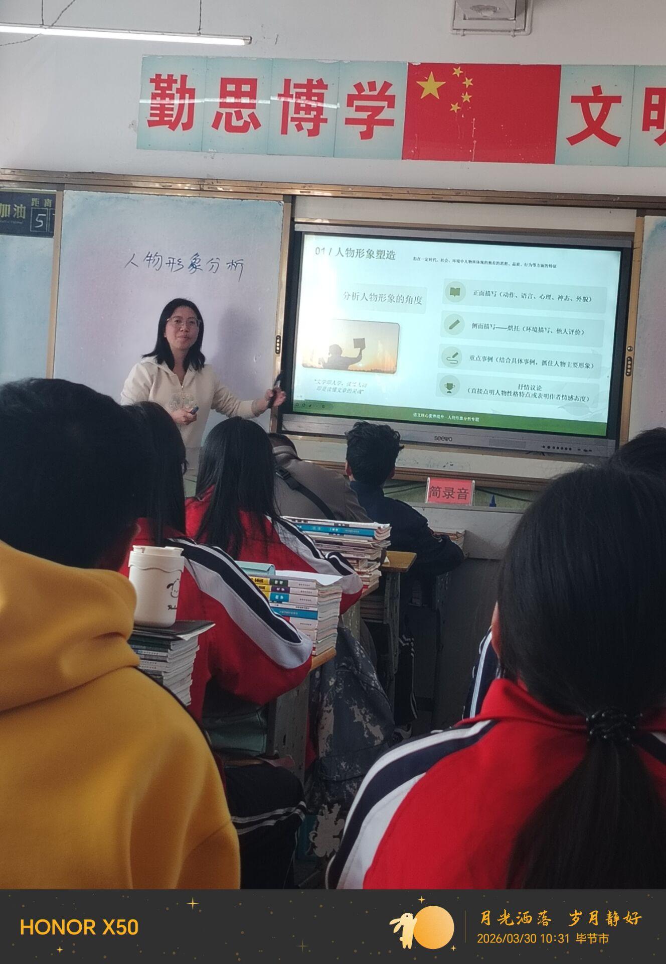 整体教学贴合毕业班备考需求,多数学生掌握了基本分析方法与答题规范,但仍有部分学生方法运用不熟练。后续他将加强课后辅导,优化练习梯度,强化真题训练,进一步提升学生人物形象分析的答题准确率,助力中考备考。