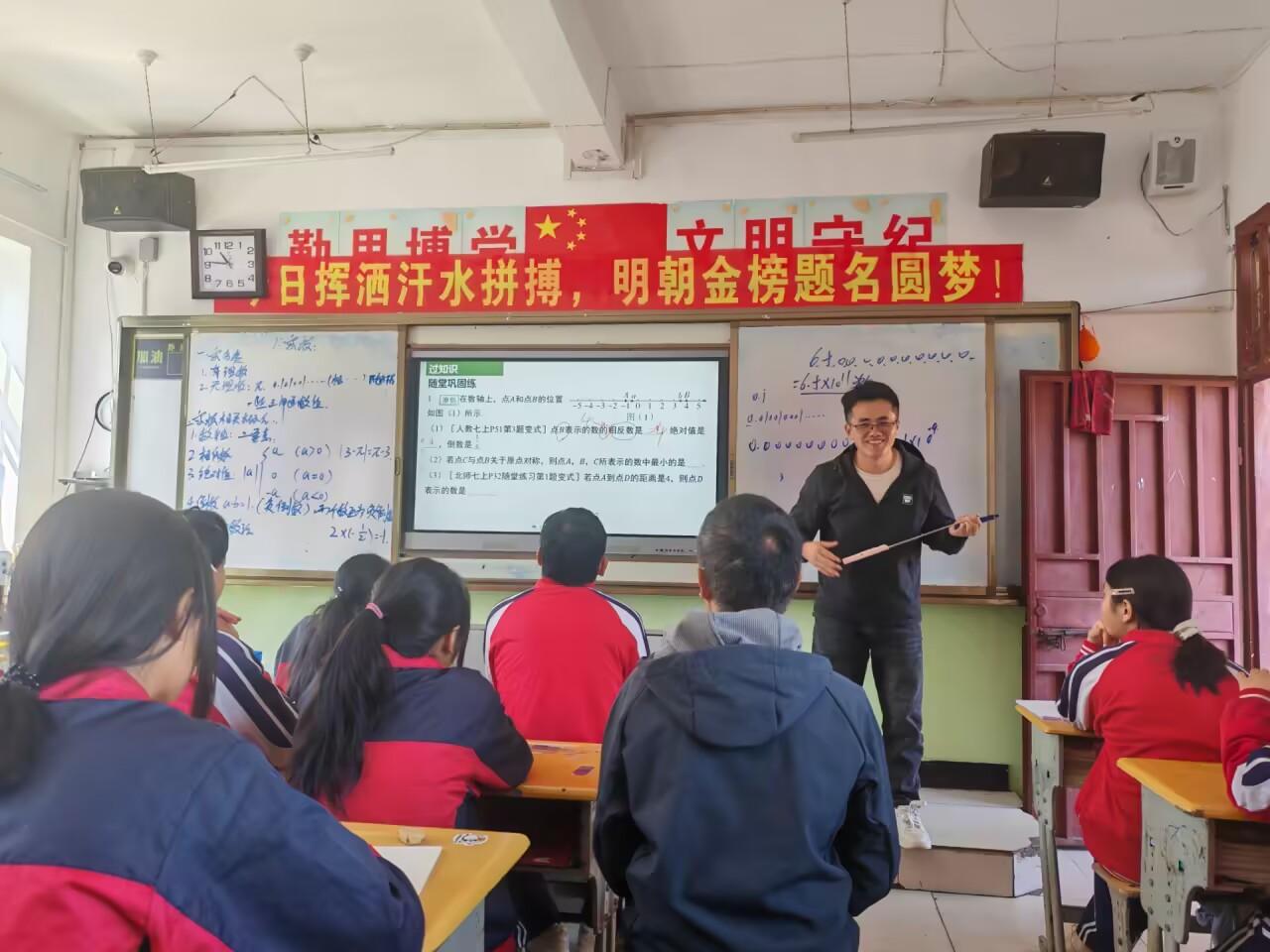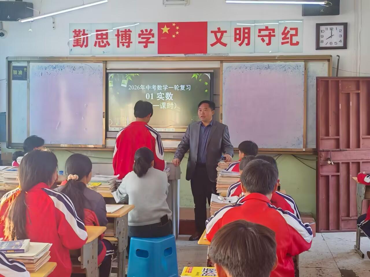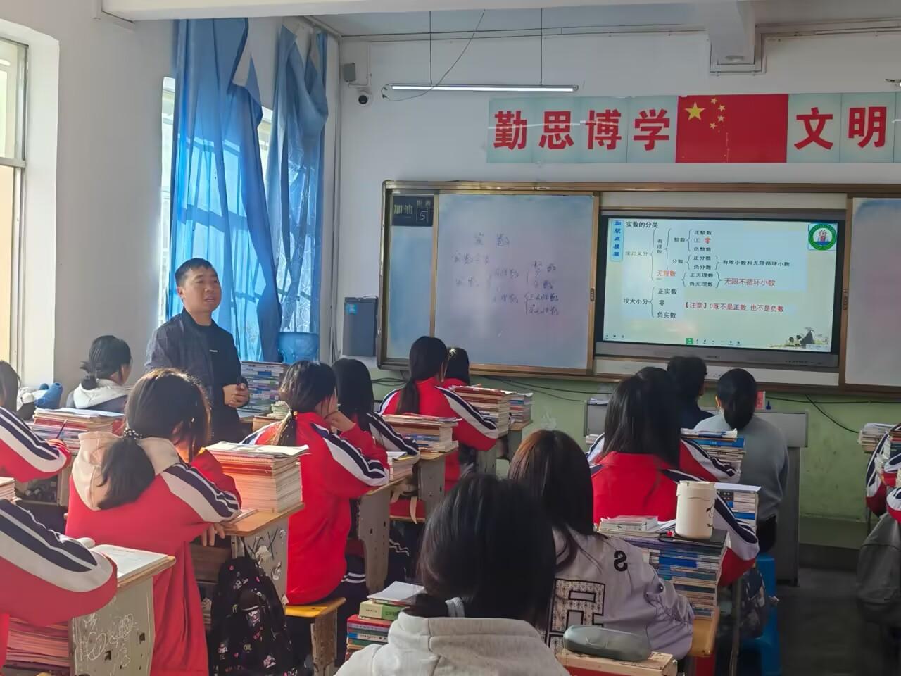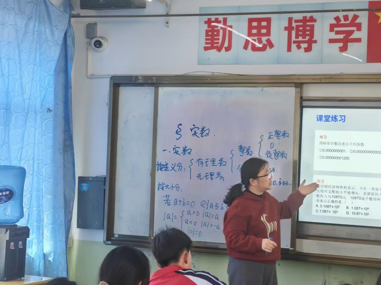 数学课上,王国平老师本节课系统讲解数与式相关知识,重点梳理实数的相关概念,实数的简单运算、结合典型例题强化解题步骤,注重夯实基础、规范答题,有效提升学生代数运算与逻辑思维能力。