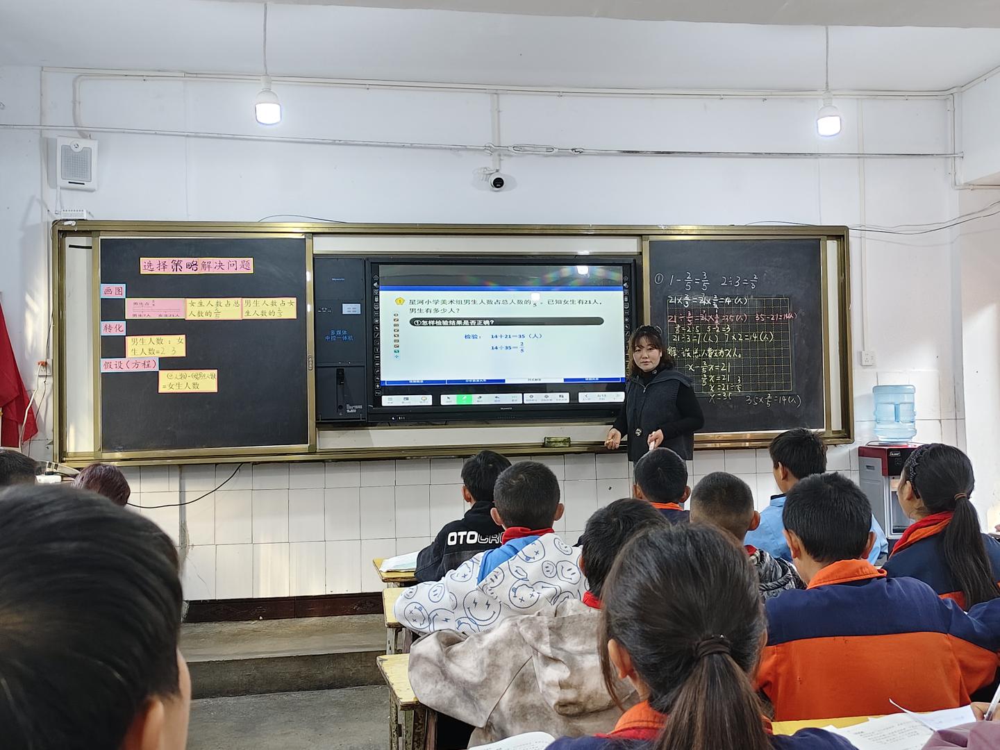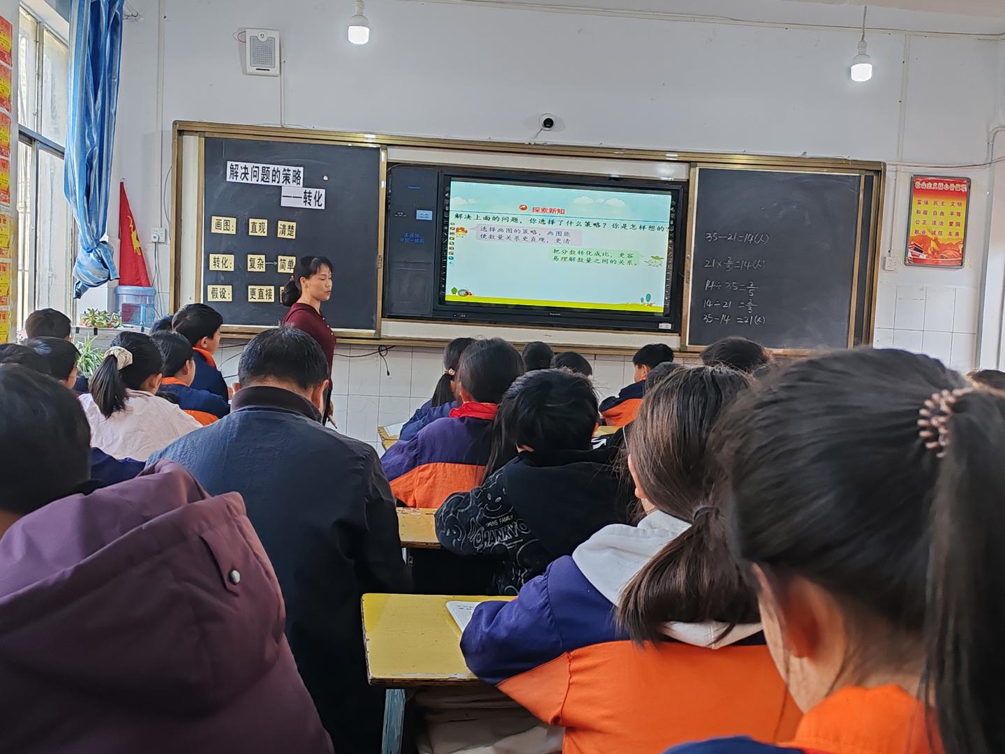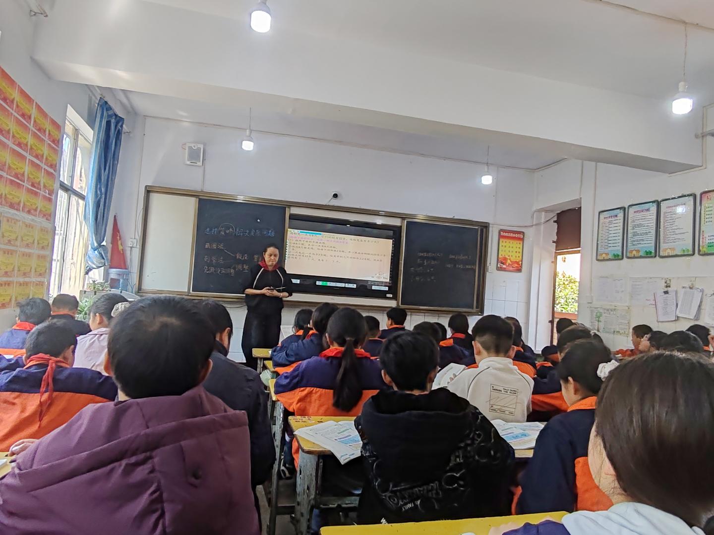 苏慧老师的课聚焦“解决问题的策略——转化”,通过板书梳理画图、转化、假设等方法,结合例题演示引导学生化繁为简。课堂氛围专注,学生能主动运用策略分析数量关系,有效提升了逻辑思维与问题解决能力,达成了教学目标。