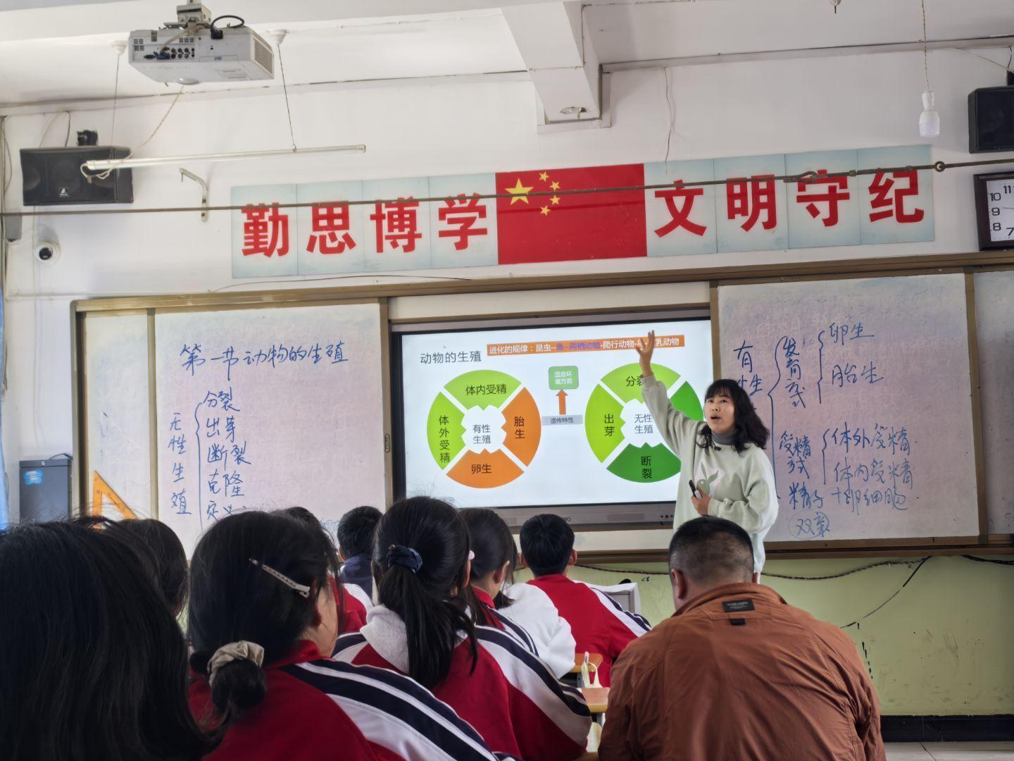 王丽老师的课堂紧扣苏科版教材重难点,以动物有性生殖为核心,教学目标明确,贴合八年级学生认知特点。通过生活实例、图片动画直观讲解体内、体外受精及卵生、胎生等概念,衔接植物生殖知识,构建知识体系;课堂互动充分,引导学生对比归纳不同动物生殖特点,突破重难点,落实生物核心素养。课堂高效扎实,是一节优质的生物新授课。