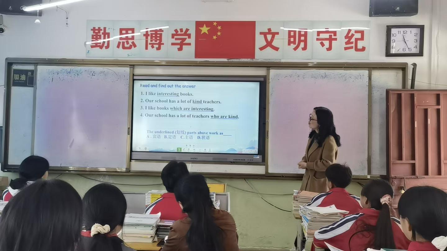英语课上,四位老师以《定语从句》为课题开展教学,授课教师教学目标定位精准,贴合初中生认知水平,围绕先行词判断、关系代词who/which/that选用等核心内容展开,重难点突出,整体教学环节完整、逻辑清晰,课堂实效性较强。