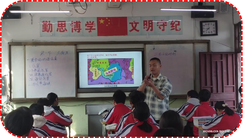 课上,张太忠老师执教,课题为《东南亚》。张老师以2024年RCEP成员国贸易数据为切入点,通过动态地图演示东南亚“两洲两洋交汇”的区位特征。教学中采用学生在拼接中南半岛与马来群岛地形模型时,通过观察马六甲海峡实时航运场景,直观理解“海上生命线”的战略意义。